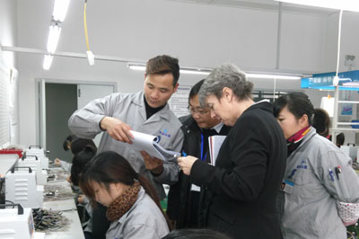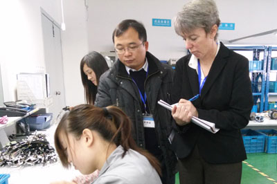 在品質(zhì)部經(jīng)理胡俊的陪同下,客戶參觀了各生產(chǎn)車間、倉儲現(xiàn)場、辦公區(qū)域等。胡經(jīng)理認真地向客戶介紹產(chǎn)品實現(xiàn)的每一道工序,并讓客戶親自動手檢驗。對關(guān)鍵過程尤為仔細,查閱作業(yè)指導(dǎo)書、過程檢驗記錄等??蛻粢卜浅UJ真地向我們了解各種產(chǎn)品的性能和用途,不停的記錄,并連聲稱贊“Very Good!”。